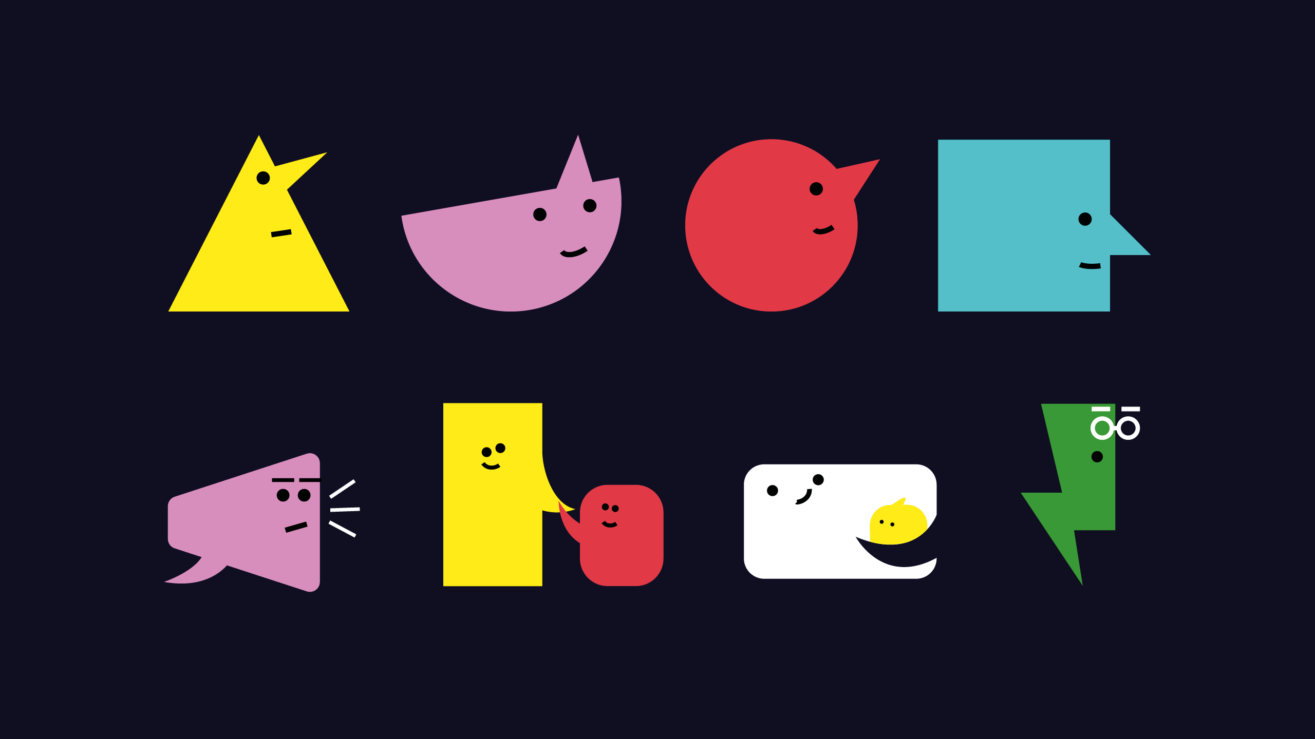 A playful twist of speech bubbles adapted to make faces, provide the opportunity to convey these different emotions, for different contexts, across the brand.