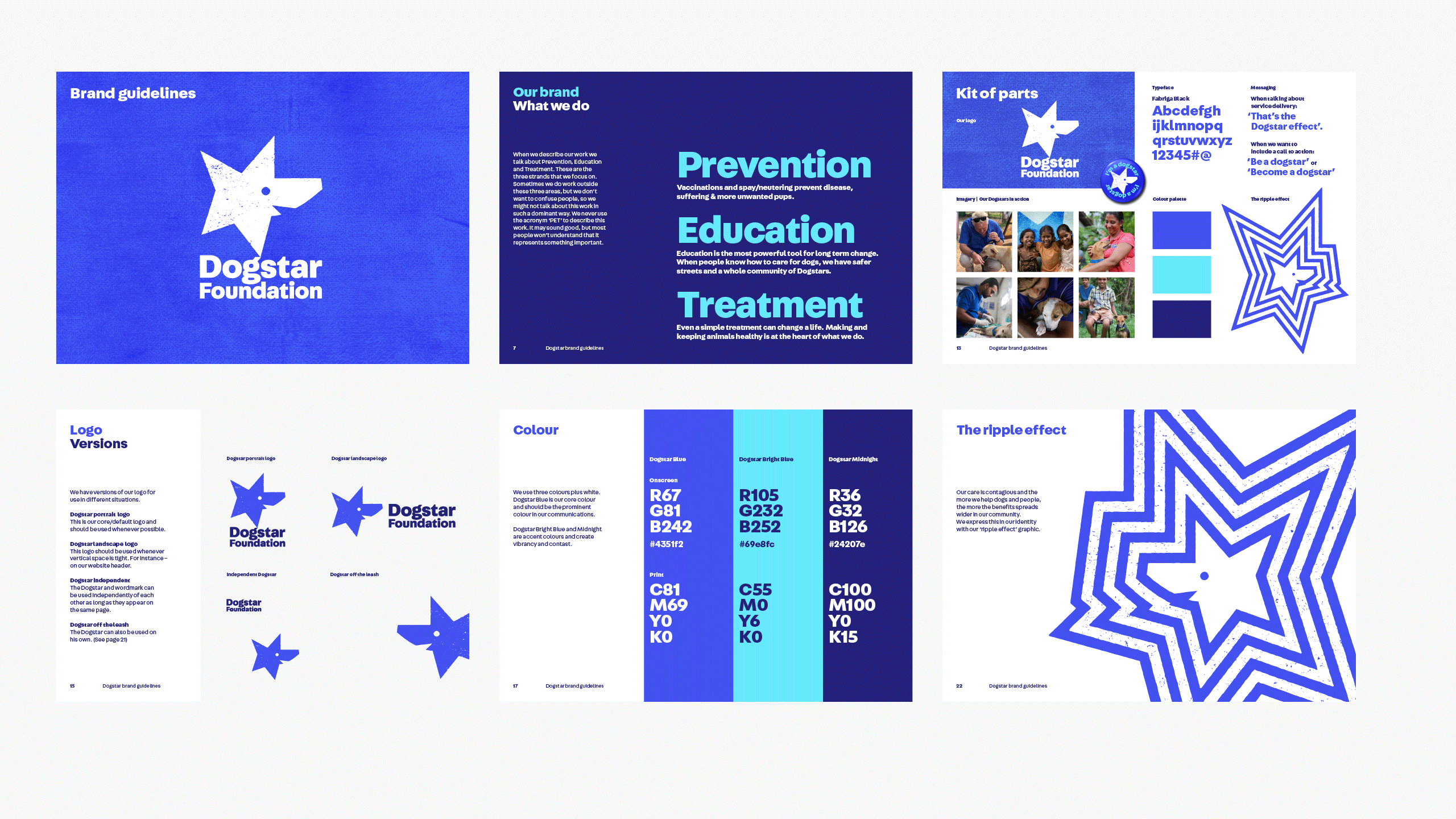 The core idea: ‘The Dogstar Effect’ represents the charity’s dogged determination to make an impact on animal welfare, and how small acts of kindness to animals can create a ripple effect in the wider community. The dogstar character is brought to life in the logo and is given further personality through animation, presenting a first-dog perspective on the world they’re inhabiting. And the call to action: Be a Dogstar is a direct ask to supporters, volunteers, staff, collaborators, to go above and beyond to help more animals.