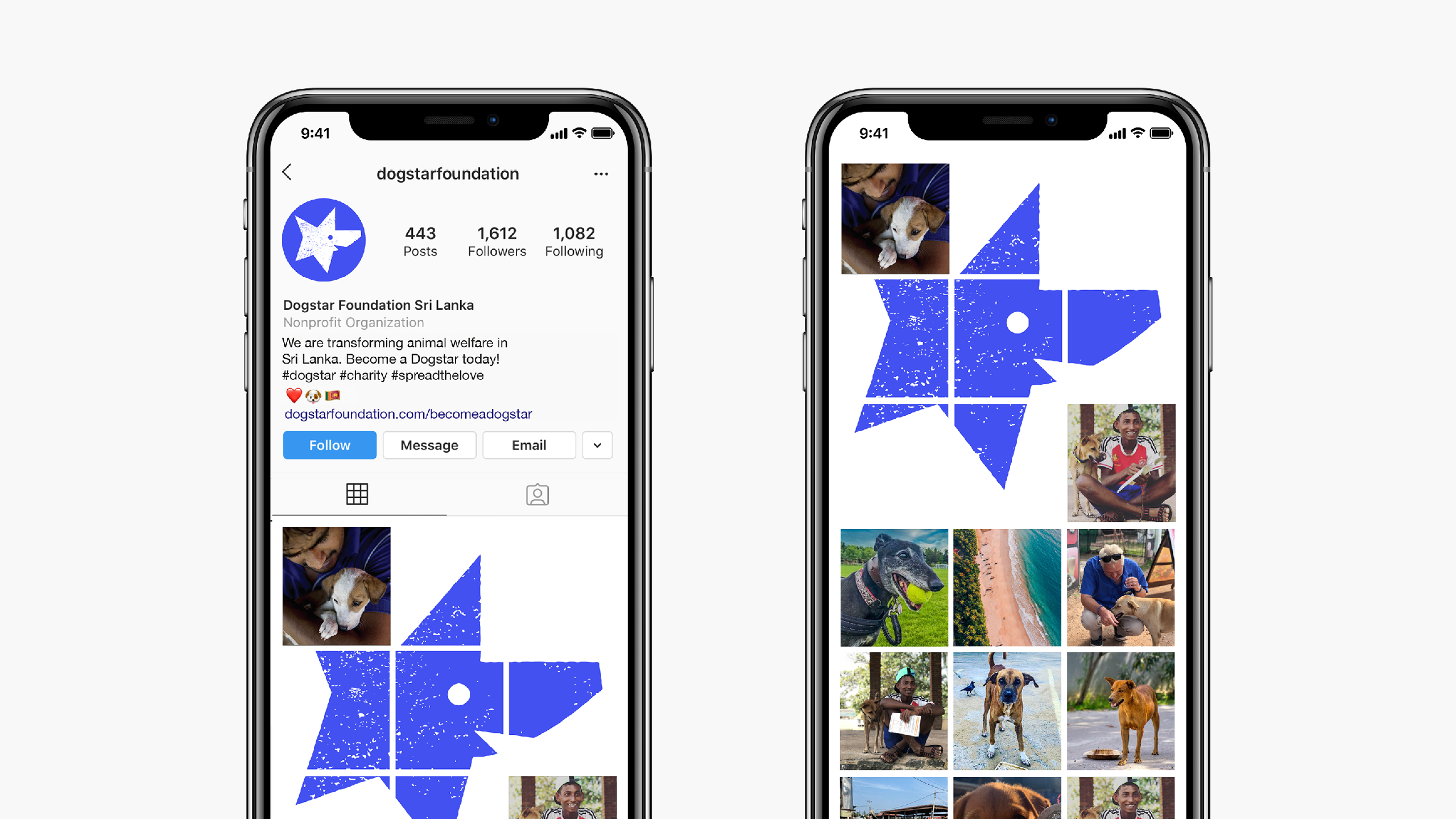 The Dogstar logo was designed to celebrate all the charisma and imperfections of the Sri Lankan street dog. In the charity’s advertising, our Dogstar tells the viewer how hard it is to be a street dog, but how with small treatments and changes to people’s behaviour, life can be so much better for everyone.