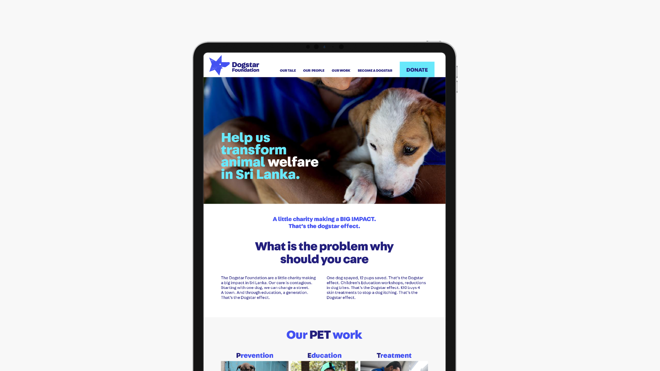 Animal welfare charity, Dogstar Foundation needed a brand overhaul. They approached us looking for a new identity, and a platform to help raise more funds.