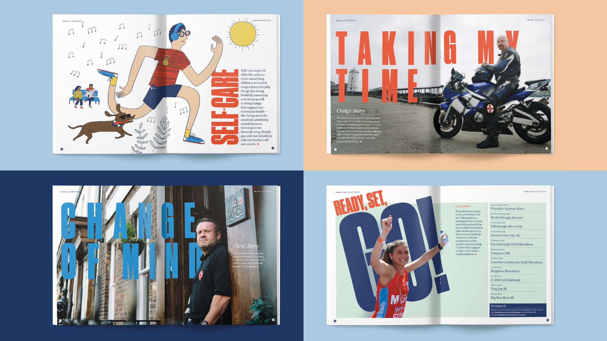 To reach as wide an audience as possible, our cover used a warmer illustration style to convey mental health issues. People should feel welcomed into a magazine relevant to them, rather than feel like they’re reading a charity marketing magazine. Internal design layouts created pace with a mix of high impact imagery, long form stories, and shorter bite size chunks of information. Conceptual illustration helped explain complex ideas about mental health, and dramatic photography brought fascinating people stories to life.