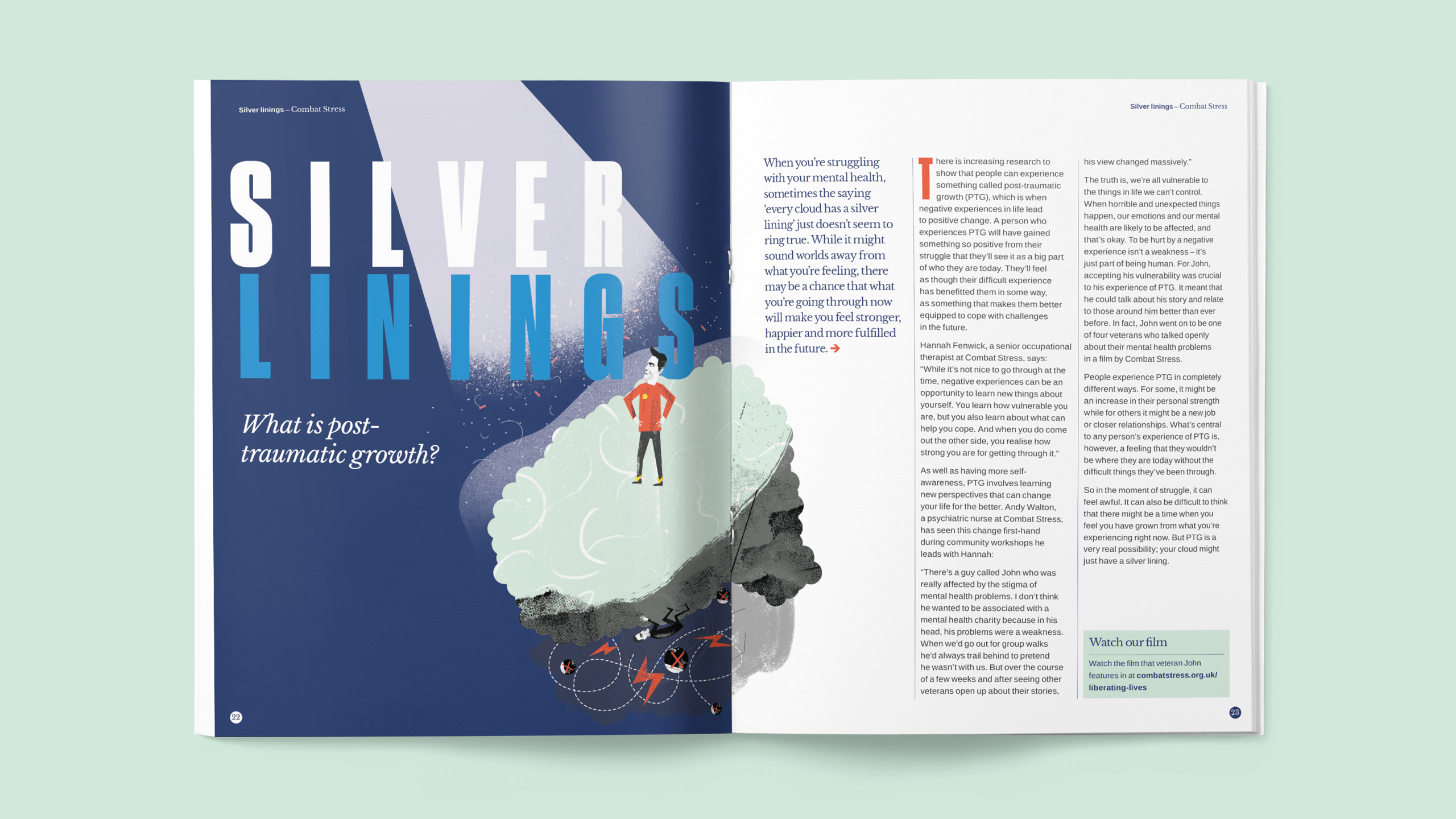 We saw an opportunity to broaden their appeal and reach younger audiences by producing content about the wider issues of mental health, and delving deeper into Combat Stress’ expertise, with advice from their occupational health professionals. By creating a magazine that was something of value to its readers, we could then cross sell fundraising opportunities and create a digital offer that asked for data in return.