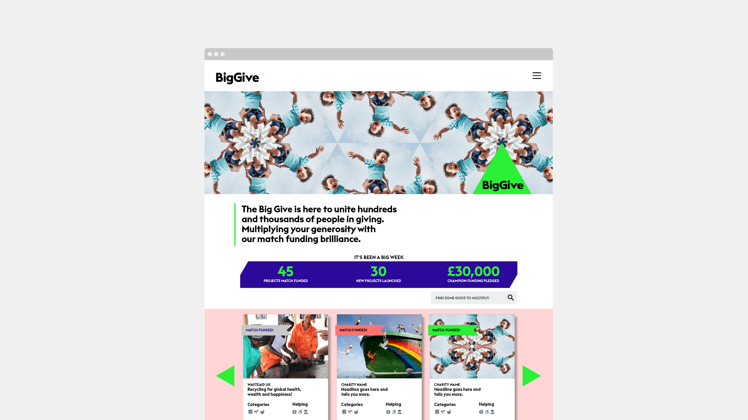 We were approached by match funding charity the Big Give to create a new identity that reflected the significant impact they make in the world.