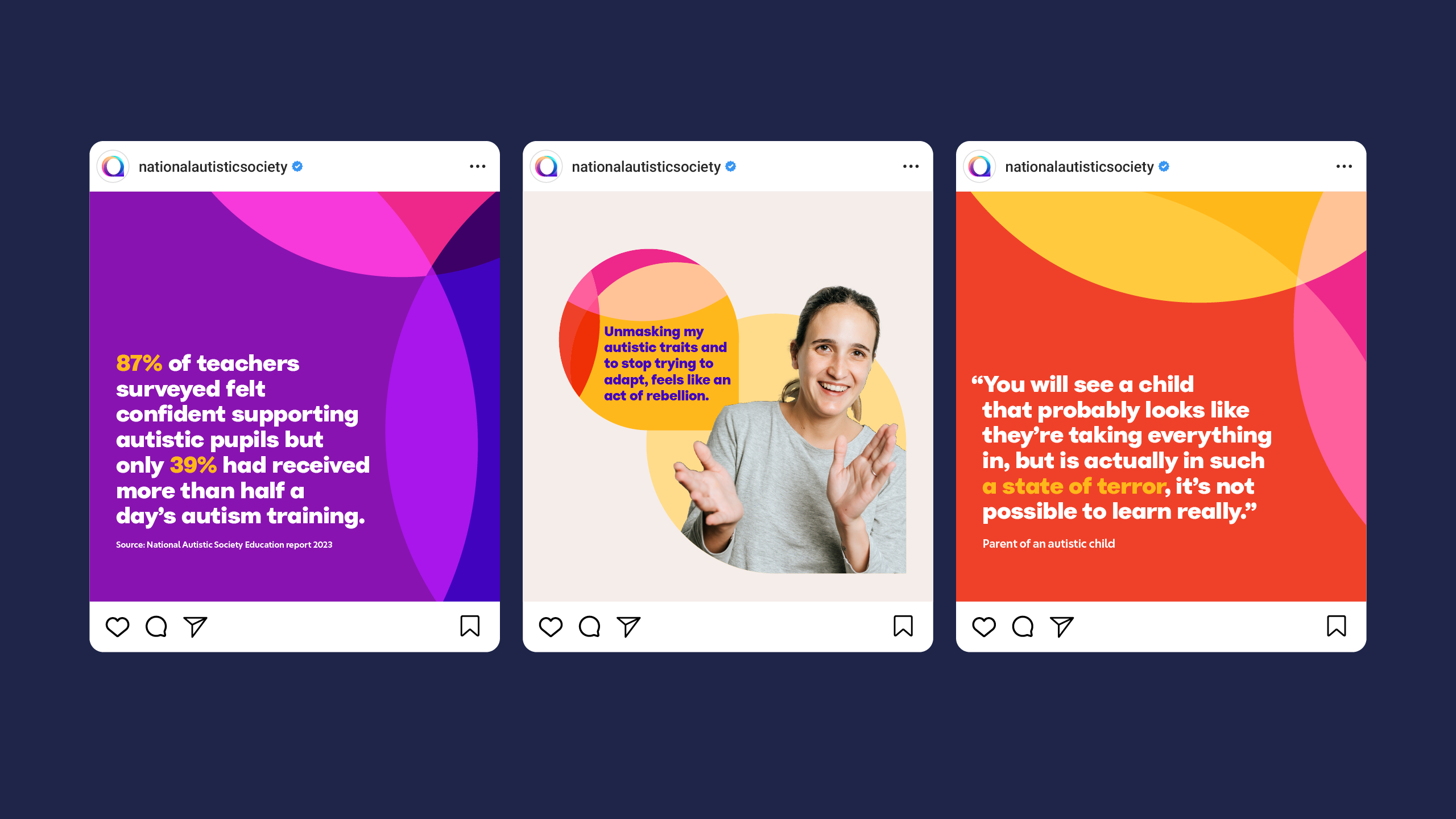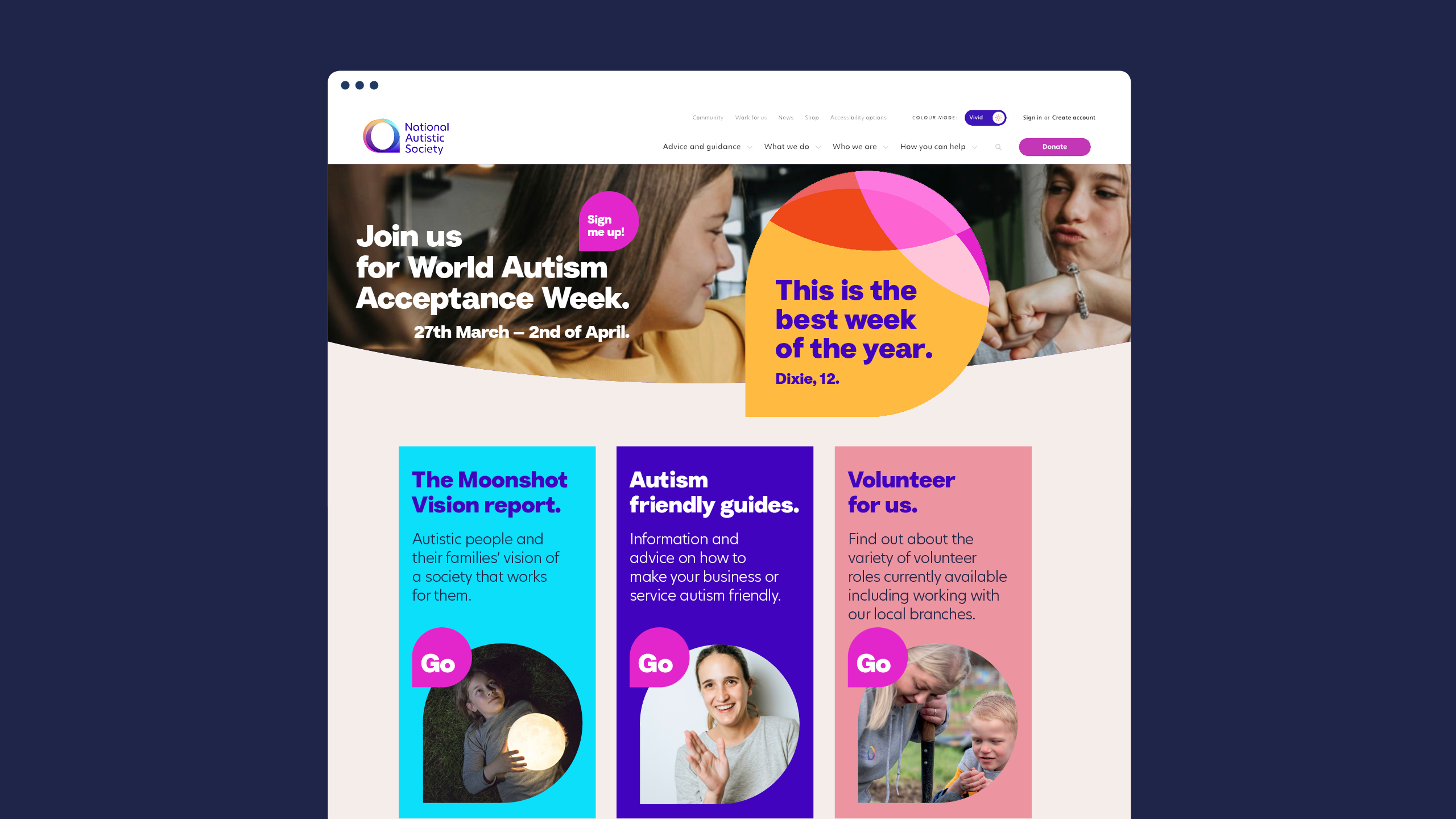 NAS worked with autistic people to define what an autism friendly world could look like, and created an ambitious vision for change. With a new organisational strategy, and purpose statement: ‘to create a society that works for autistic people’ they recognised the need for a brand that can drive this ambition forward.